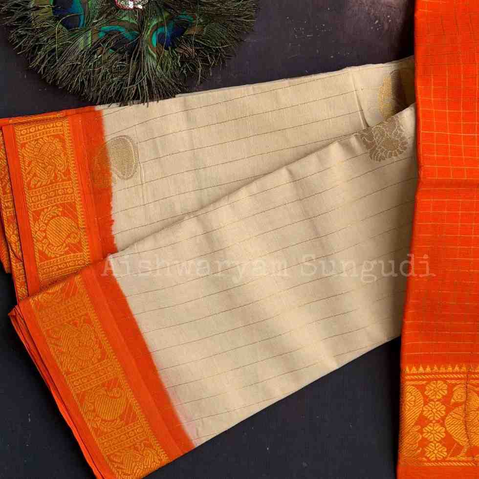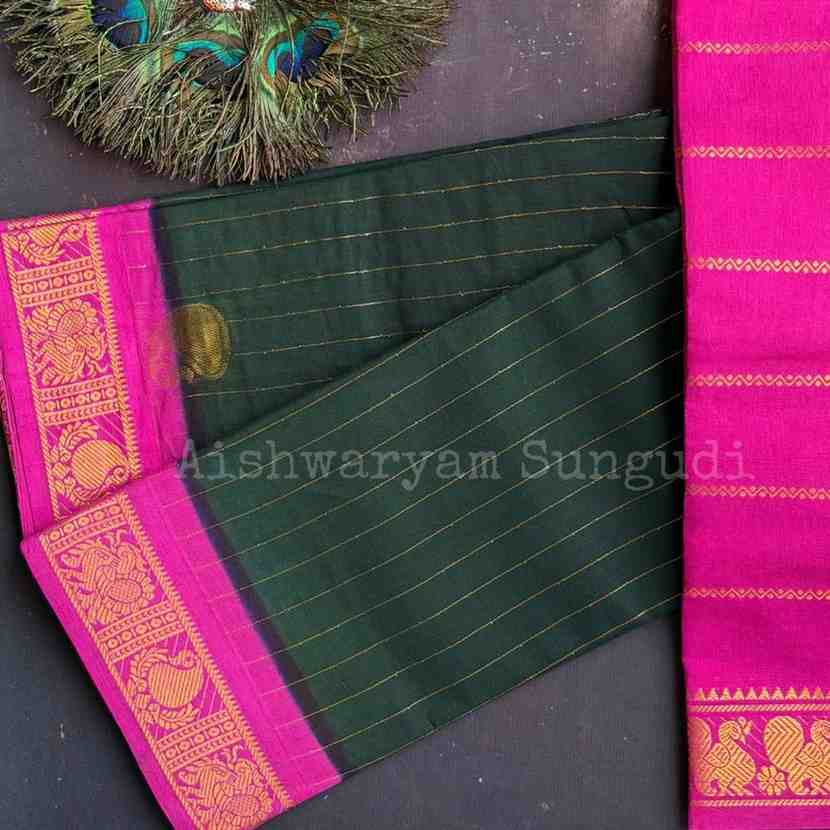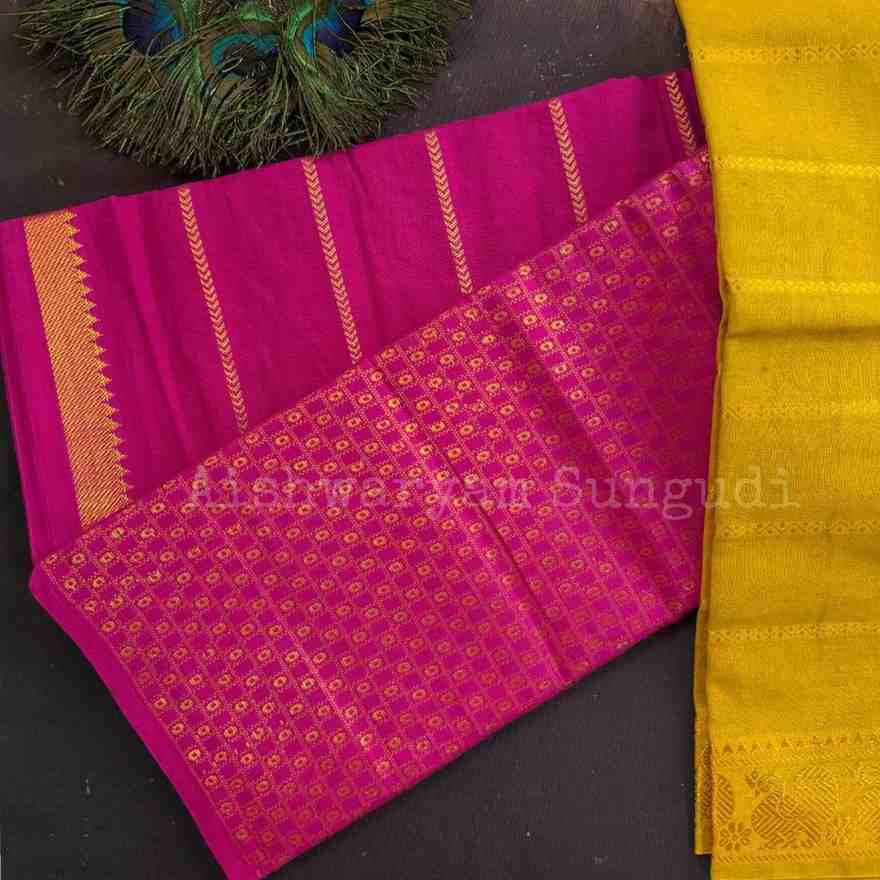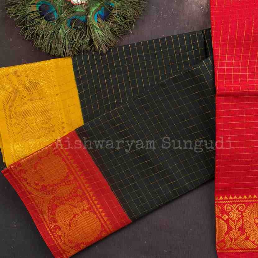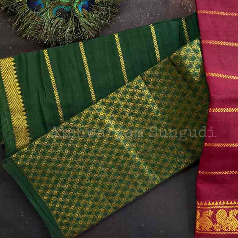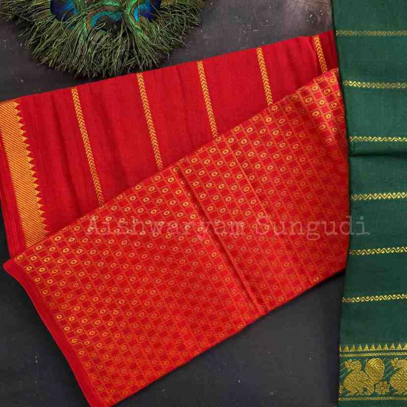We have a detailed collection of Madurai Sungudi Sarees which includes Authentic and Traditional Sungudi of Hand knotted Tie & Dye, Batik, Sungudi Wax dots. Evolution in sungudi sarees have made us to create Kalamkari fusions. These days, printed sungudis are popular. But the traditional style will always be distinctive and stand out from other styles.