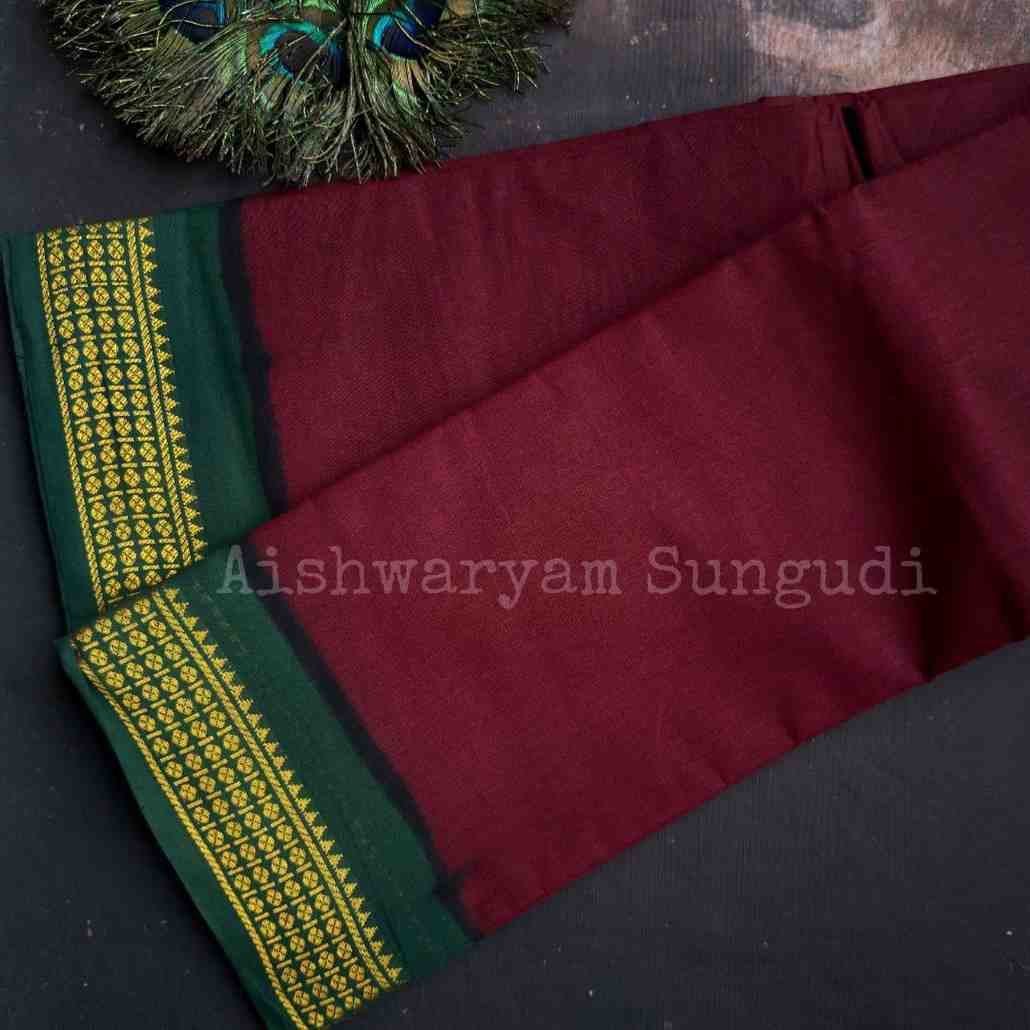 Description- Mini Rudhraksham Plain Sungudi | Double Side Border