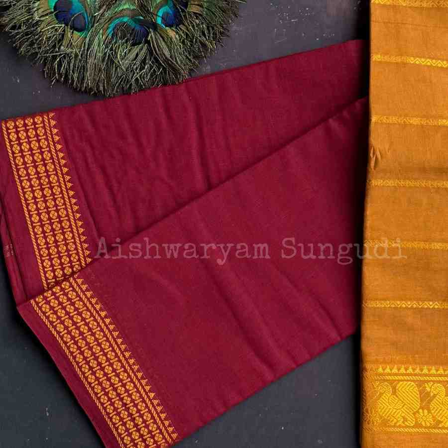 Description- Mini Rudhraksham Plain Sungudi | Double Side Border