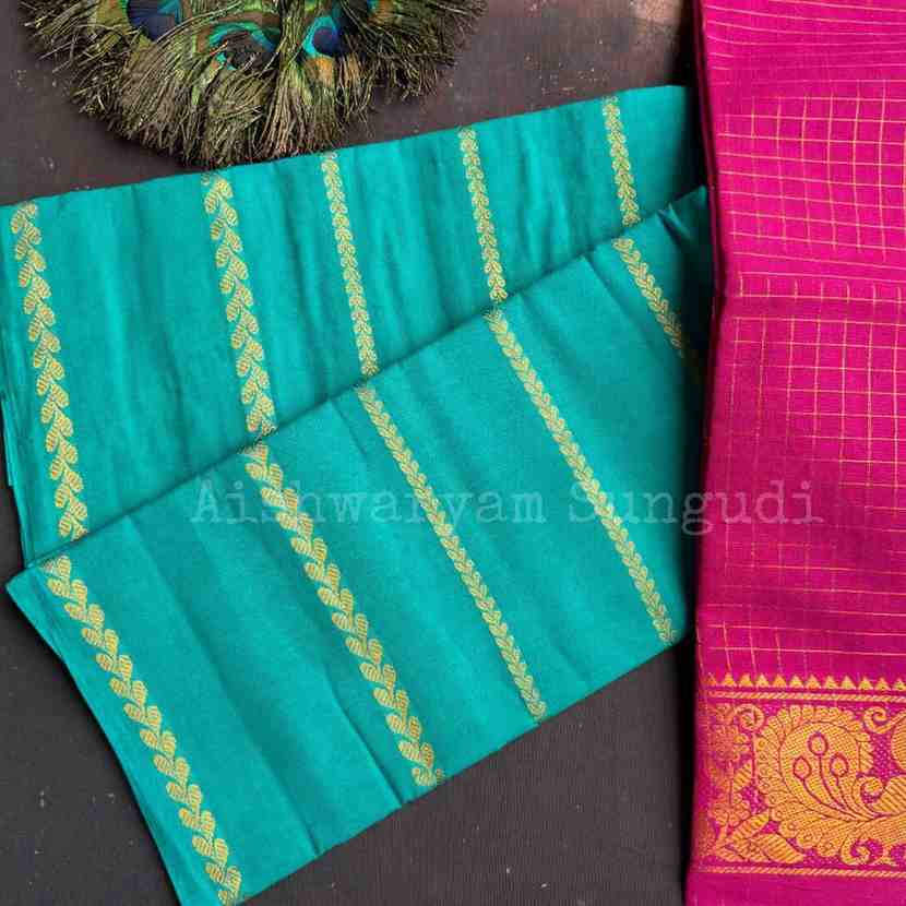 Be the first to review “Aishwaryam Velthari – Turquoise X Rani Pink”