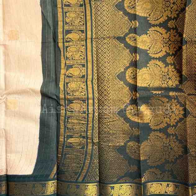 Description-Â Double Side Gold Zari Border With Horizontal Zari Lines / Pallu Grand