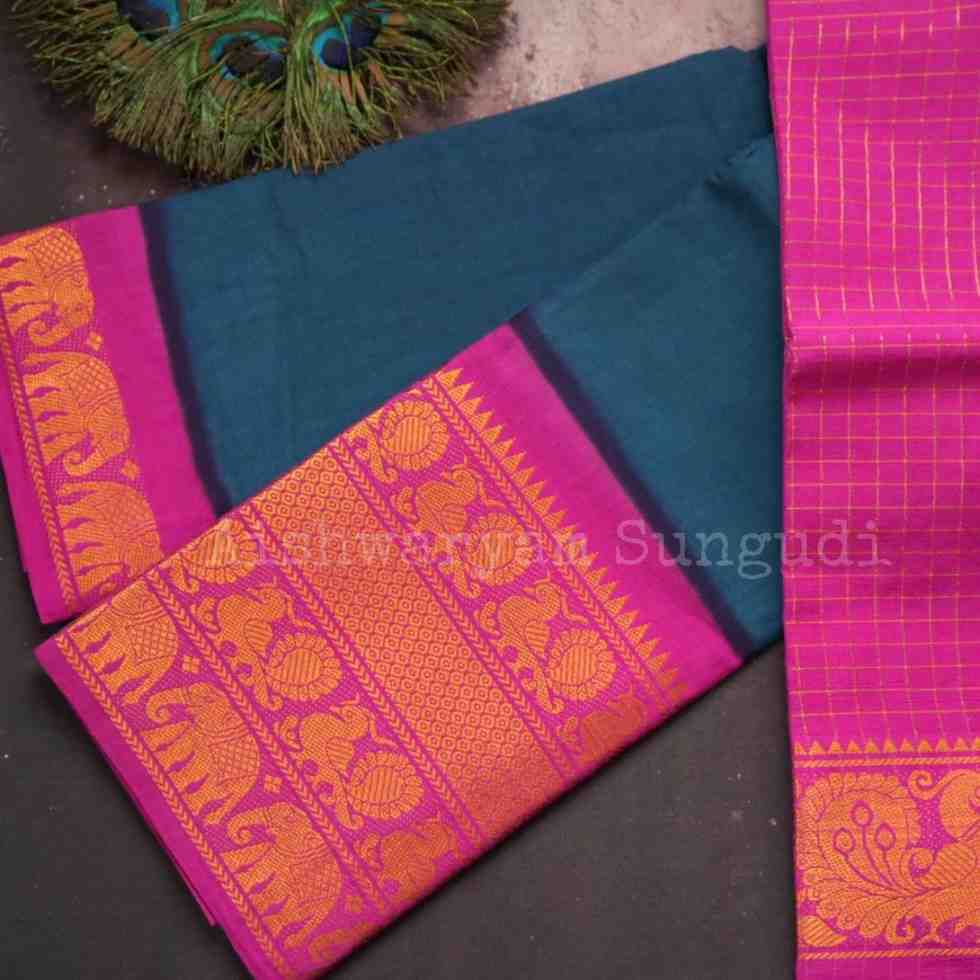 Be the first to review “Mayuri Plain – Peacock Blue X Rani Pink” Cancel reply