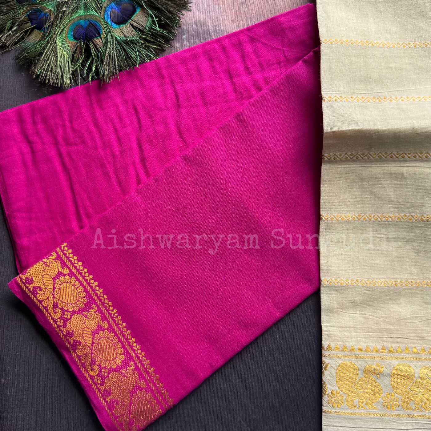 Description- Single-side Gold zari border | Body Plain