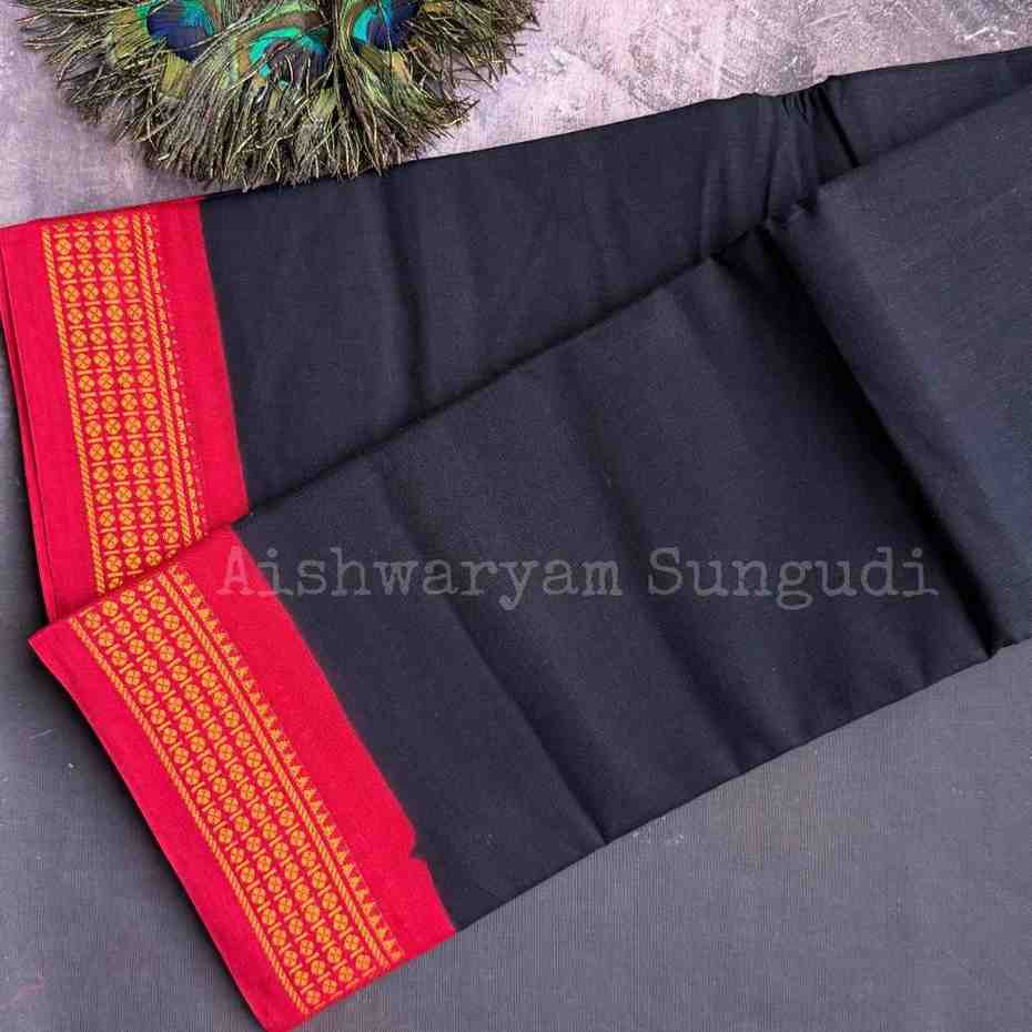Rudraksham Plain Sungudi – Black X Red – houseofaishwaryam