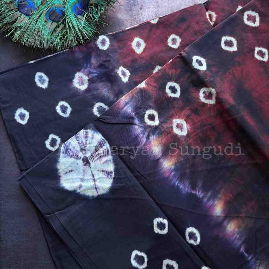 Description- No zari border | All Over Tie And Dye | Hand Knotted Sungudi