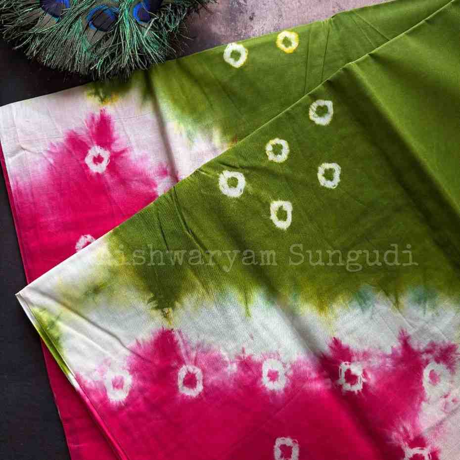 Description- No zari border | All Over Tie And Dye | Hand Knotted Sungudi
