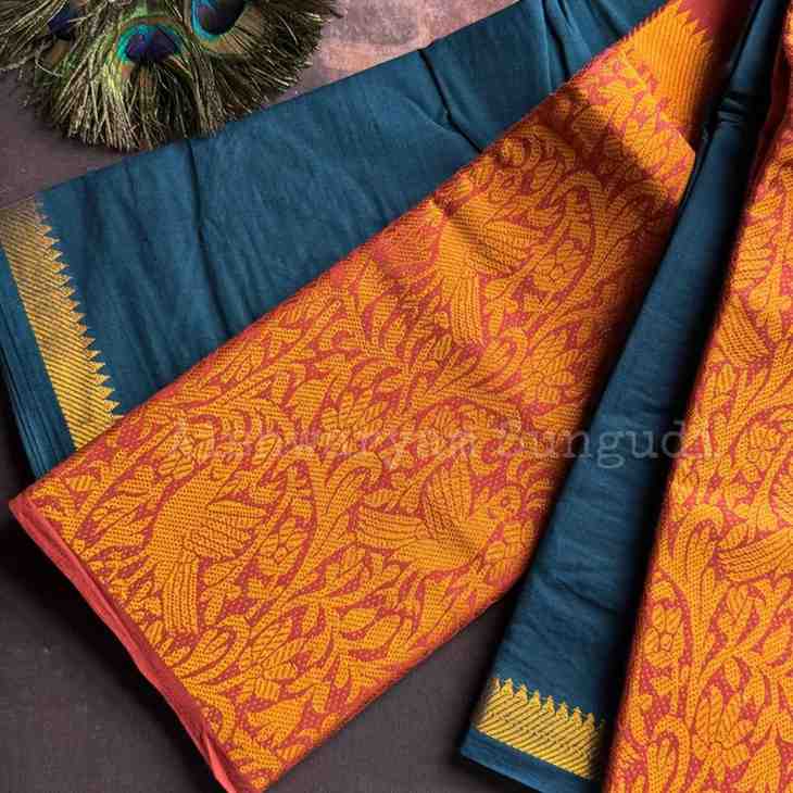 Be the first to review “Vaseegara Gold – Peacock Blue X Red Banana” Cancel reply