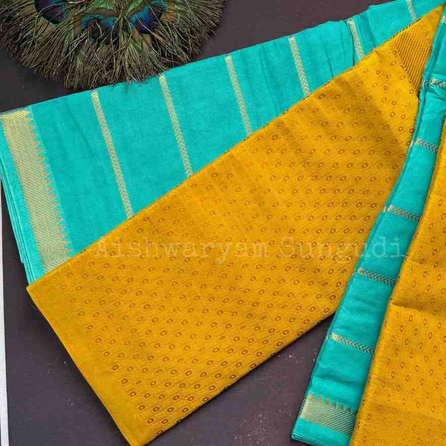 Vaseegara Velthari – Cyan X Mustard – houseofaishwaryam