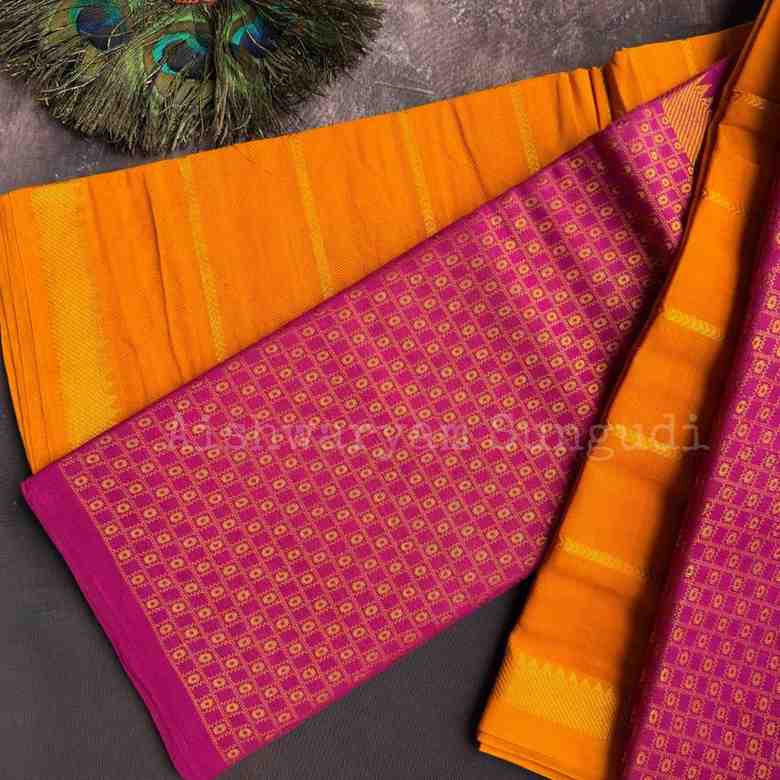 Be the first to review “Vaseegara Velthari – Mango Yellow X Rani Pink”