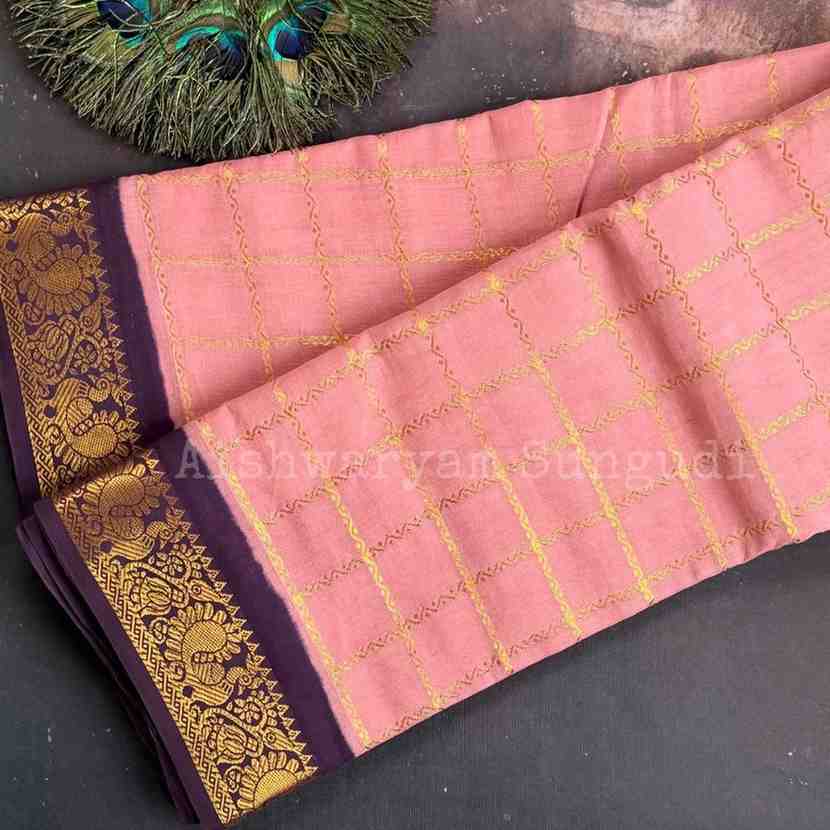 Description- Gold Zari Border Checks / Pallu Grand