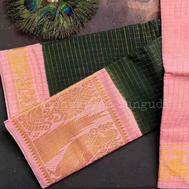 Zari Checks – Dark Green X Baby Pink – houseofaishwaryam