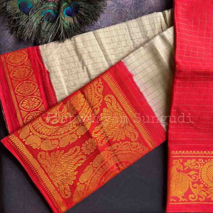 Zari Checks – Ivory X Red Chilli – houseofaishwaryam
